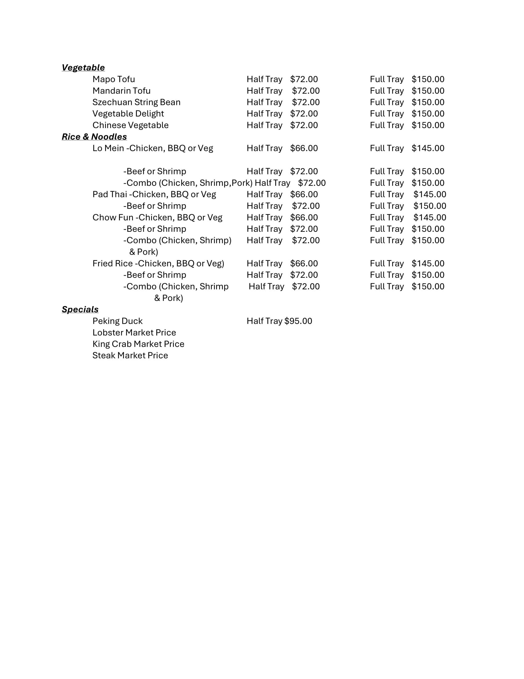 • Chinese Menu